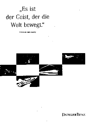 Diese Werbeanzeige für die Produkte des Daimler-Benz-Konzerns aus Zeitungen in den 90er Jahren enthält auch eine weltanschauliche Botschaft.