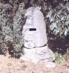 Dem germanischen Totenhain nachempfunden: Die "Ahnenstätte Hilligenloh" in Niedersachsen, ein "naturbelassener" Friedhof für geistige Nazis, der nach Protesten von Antifaschisten in den Jahren 1999/2000 wegen seiner faschistischen Runen und der offenen Verehrung für Erich und Mathilde Ludendorff den Stadtrat von Hude beschäftigte. Nun will man Pflanzen über Runen und Namen wachsen lassen.Der "Bund für Gotterkenntnis (L) e. V.", wie sich die von Mathilde und Erich Ludendorff gegründete Religionsgemeinschaft nennt, wurde am 25. Mai 1961 von insgesamt 23 Instanzen (Innenminister der Länder und Regierungspräsidenten) in allen Bundesländern und West-Berlin verboten - als "Keimgebiet antisemitischer Gruppengesinnung", wie im Verfassungsschutzbericht für das Jahr 1963 steht. Die jährlichen Berichte werden erst seit dem Ende der fünfziger, Anfang der sechziger Jahre veröffentlicht, als erstmals nach Kriegsende wieder jüdische Friedhöfe von Neonazis geschändet wurden. Die Juden wurden ermordet, um ihre Grabstätten kümmert sich nur ab und zu mal eine Gemeindeverwaltung. Auf der Ludendorffer-Ahnenstätte wurde noch niemals ein Grabstein umgeworfen oder beschmiert. Die Anlage ist gepflegt, in den letzten Jahren ließ man ein ziemlich großes Backsteinhaus für die Gärtnergeräte bauen. Die Nachkommen dieser "Ahnen" leben, sie können sich kümmern um diese Stätte.