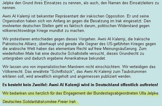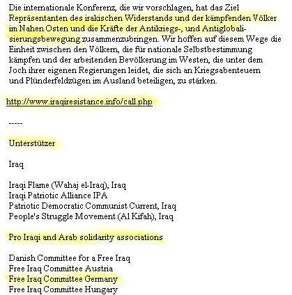 "Deutschen Solidaritätskomitees Freier Irak" an und bekennt sich