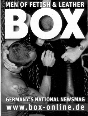 Im selben "Box"-Heft mit dem Wowereit-Bernhardt-Interview und der Anti-"Maneo"-Hetze Bernhardts warb "Box" auch für das "Ostertreffen 2009" der Gewaltsex-Szene in Berlin. Wir haben uns das zusätzliche, spezielle Werbeheftchen der Veranstalter dieses "Ostertreffens" besorgt und können hier zeigen, für welch menschenverachtende Sexualpraktiken die Zeitschrift "Box" hier warb. Schwamm drüber: Wowi segnet alles nun mit seiner "Box"-Präsenz ab! Scheinbar harmlose "Box"-Werbung auf dem