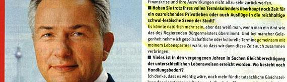 ![]() Warum nicht mal in einer gerichtsbekannten Gewaltsex-Zeitschrift mit einem Al Qaida- und "Bareback"-Propagandahelfer über Privates parlieren? Wowereit im Bernhardt-Interview in "Box", April 2009, Seite 6, mit Berlin-Symbol an der Backe. Von