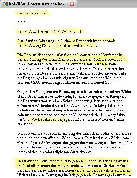 zum bewaffneten Kampf; über die Domain des DSkFI, "freeiraq.de",
