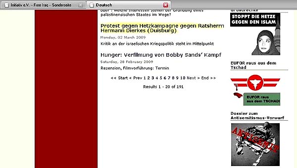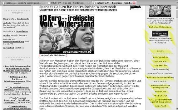 "10 Euro für das irakische Volk im Widerstand" führen direkt in den internationalen Terrorismus: ![]() Einige Links aus der rechten Spalte der