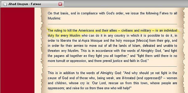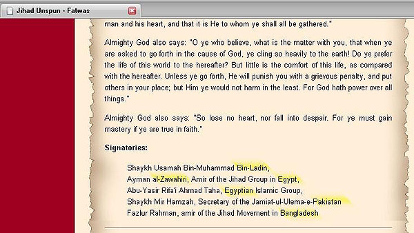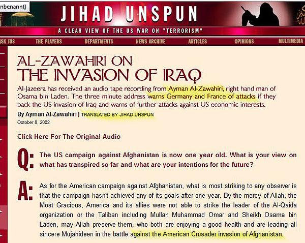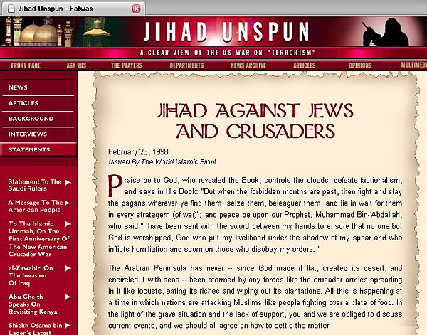 werden auf "Jihad Unspun" Al Qaidas "Fatwas" gegen die westliche