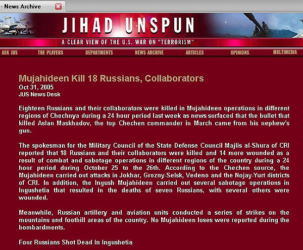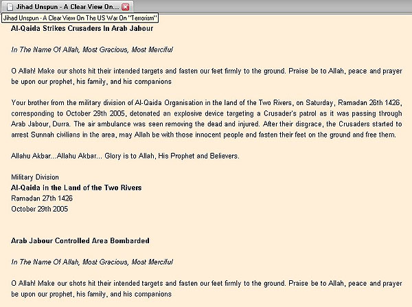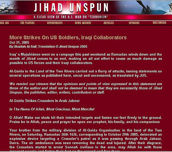 Meldungen von "Jihad Unspun", die wir archiviert hatten. Dabei