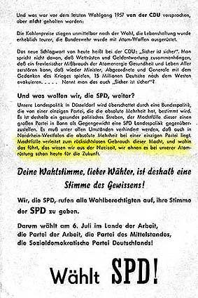 ![]() Mit Rau und Heinmann verband ihn auch der Pazifismus? Den man freilich nicht verabsolutieren darf, sonst wären Rau und Heinemann ja nicht in die SPD gegangen und hätten nicht Regierungsämter für einen Staat mit einer großen Armee übernommen, nachdem sie erst mal gegen die Wiederbewaffnung protestiert hatten. Meine Eltern fuhren in der Nachkriegszeit zu den großen internationalen Friedensdemonstrationen, die die Gewerkschaften mit organisierten, nach Belgien und Holland. Das weiß ich nur aus Erzählungen. Mein Vater hat sich später insbesondere um die Kriegsdienstverweigerer gekümmert, war, wie später auch meine Mutter, Beisitzer in den Gewissens-Prüfkammern für Kriegsdienstverweigerer. Aus den Erfahrungen heraus hat er dann im Bundestag für die Abschaffung der Gewissensprüfung gekämpft, was dann ja auch Gesetz wurde. Da war er mit dem "Leverkusener Kreis" d'accord und hat dafür bei den Gewerkschafts-MdB's geworben. Leider haben die Konservativen das Gesetz als "Postkartenlösung" verunglimpft und vor dem Bundesverfassungsgericht wieder zu Fall gebracht. Darunter hat er dann sehr gelitten. Ich habe für ihn damals ein paar Artikel formuliert, in denen er die Freigabe des Gewissens forderte. Manchen in der Partei war seine unbedingte Verteidigung und Einforderung des Rechts auf Kriegsdienstverweigerung gar nicht recht. Aber er war unabhängig genug, die Veröffentlichung seiner Meinung auch im SPD-Pressedienst durchzusetzen. ![]() ![]() ![]() Freilich ging es nicht ohne Drohungen. Er musste sich vorwerfen lassen, zu "erpressen", ein Konkursverwalter beschwerte sich schließlich sogar bei Bundeskanzler Brandt über meinen Vater, zum Papst war's ihm wohl zu weit. Oder er wußte die Faxnummer nicht, haha. Solche Zeitungsartikel waren schon die Themen bei uns zu Hause am Mittagstisch, wenn wir aus der Schule kamen und unsere Mutter schon mit dem Essen auf den wieder mal verspäteten Mann wartete, der sich zu spät von einer Verhandlung mit einem Unternehmer oder einem Betriebsratsgespräch hatte losreißen können. "Jetzt ist alles verbrutzelt!", das war ein Satz meiner Mutter aus meiner Kindheit und Jugend, den ich niemals vergessen werde. Meine Mutter war nämlich eine sehr gute Köchin, von der ich auch in dieser Hinsicht viel gelernt habe. Die war natürlich sauer, wenn das Essen zu lange warm gehalten werden musste; der Satz fiel immer, wenn mein Vater zu spät zum Mittagessen kam. Aber eigentlich traf sich die Familie jeden Mittag zum Essen, wenn es eben ging, das war eine Regel, und die gehört auch zu meiner familialen Sozialisation. So was prägt, wenn man der Sohn einer Kämpfernatur ist, da soll sich mal niemand Illusionen machen! Ein Kämpfer