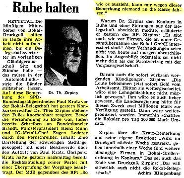 (Oben: Artikel der "Rheinischen Post" von 1971) Unten: Wenige Jahre später, schon