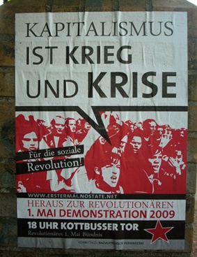 Plakat für die Gewalt-Demo Bernhardts an einer Kreuzberger Hauswand: Markus Bernhardts Krawall-Demo: