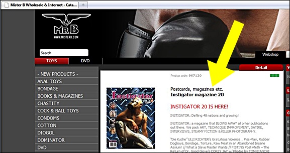 ![]() ... und ebenso wird dort die Ausgabe Nr. 20 von "Instigator" online verkauft: ![]() (BIFFF...-Screenshots von der Webseite "Mr B" im September 2010) Im Werbeheft für "Folsom Europe Berlin" 2010 mit dem Wowereit-Grußwort wird nicht nur sexualisierte Gewalt verherrlicht (unten links), als könne "Wowi" gar nicht genug vom Quälen von Menschen und von Vergewaltigungen bekommen; hier findet man auch eine weitere Anzeige von Hauptsponsor "Mr B" für die Hauptparty des Straßenfestes (rechts). Wowereit ist mittendrin in der Gewaltsexualität: ![]() Weiter im "Folsom Europe