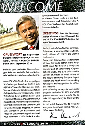 Titel des "Folsom Europe"-Werbeheftes 2010, rechts: Wowereits
