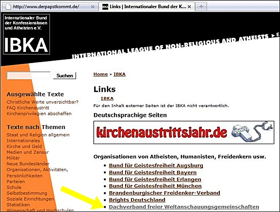man auf das IBKA-Symbol, erscheinen auf dessen Internet-Seite die