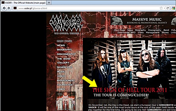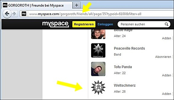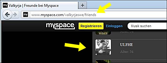 36"-Werbung für das Nazi-Musik-Fest: ![]() (BIFFF...-Screenshot von der "SO 36"-Webseite, Oktober 2011) Wir haben uns die MySpace- und YouTube-Seiten der drei angekündigten Bands "Gorgoroth", "Vader" und "Valkyrja" näher angesehen. Zu ihren dortigen "Freunden" gehören Neonazis, die sogar offen in Deutschland verbotene Nazi-Symbolik verwenden -- zu sehen auf den Webseiten dieser Bands! Ruft man die "Freunde"-Liste auf der MySpace-Seite von "Gorgoroth" auf, springen einem sogleich Hakenkreuze in vielfacher Form und die in Deutschland verbotene Odalsrune ins Gesicht. Die Odalsrune war das Zeichen der vebotenen neonazistischen "Wiking-Jugend" und wurde von der "Hitler Jugend" als Zeichen verwendet. Nazis