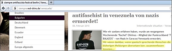 ![]() ... und antisemitische Hetze aus der Webseite der venezuelanischen Schwesterorganisation "RASH Los Caracas". Wenigstens die Symbolik hätten die Berliner begreifen können, wenn sie schon nicht die Infamie "Similitud entre Sionismo y Nazismo" als "Gleichheit von Zionismus und Nazismus" übersetzen können ("Aber was bedeutet 'Infamie'?"): ![]() Die einen sprechen skandinavisch und hetzen gegen das "Judao-Christentum", die anderen versuchen sich im Spanischen des venezuelanischen Antisemitismus. Und die Extreme berühren sich mal wieder -- mit ihren Springer-Stiefeln! Hauptsache Krawall. Berliner Justiz völlig blind nach rechtsaußen Für die Berliner Justiz sind die vielen fremden Sprachen in Europa ein großes Hindernis, für Nazis ein großer Vorteil. So hatte die Berliner Staatsanwaltschaft schon im Februar 2009 (!) auf unsere Strafanzeige vom April 2008 (!) wegen des Verdachts der Volksverhetzung beim "Pagan Metal"- Musikfest, das im April 2008 im "SO 36" stattfand, mitgeteilt, Straftaten in den Texten der Bands hätten von den im "SO 36" anwesenden "Beamten des polizeilichen Staatsschutzes" nicht festgestellt werden können; die konnten nämlich kein Finnisch. Mit großem Einfühlungsvermögen in völkische Kulturen und "die Sagenwelt der Kelten und Germanen" antwortete uns Staatsanwalt Pützhoven damals, "ein hinreichender Tatverdacht für eine Strafbarkeit gem. § 86 a StGB" (Verwendung von Kennzeichen verfassungswidriger Organisationen) könne auch in der Verwendung des Hakenkreuzes, das "in vielen europäischen und außereuropäischen Ländern, so z. B. in Finnland nicht strafbar" sei, auch in Berlin nicht gesehen werden. Ein von uns kritisiertes englischsprachiges Lied, in dem Germanenkinder mit abgeschlagenen Christenköpfen Fußball spielten, ließ die Staatsanwaltschaft durch einen vereidigten Dolmetscher eigens "in die deutsche Sprache übersetzen", um dann festzustellen: "Das Christentum wird" (in dem Lied) "zwar als Aggressor, Besetzer pp dargestellt, das es zu bekämpfen gilt, eine gravierende Herabwürdigung findet aber nicht statt. Im übrigen ergibt sich aus dem Gesamtkontext, dass hier das Christentum in den nordischen Länden gemeint sein soll. Der Angriff richtet sich damit nicht gegen eine 'inländische' Kirche" und sei daher in Deutschland ohnehin nicht verfolgbar, meinte Staatsanwalt Pützhoven. "Eine Volksverhetzung gem § 130 StGB kann hier, unabhängig von der Frage, ob ein in englisch (bzw. in finnischer Sprache) im Internet veröffentlichtes Lied 'geeignet ist den öffentlichen Frieden zu stören' (§ 130 Absatz 1, 3 und 4 StGB) bzw. als 'verbreitet' oder 'öffentlich zugänglich' gemacht (§ 130 Abs. 2 und 5 StGB) angesehen werden kann, nicht bejaht werden", so Pützhoven weiter. Zusammenfassend ergebe sich nach der fast zehnmonatigen (!) Prüfung durch die Berliner Staatsanwaltschaft, "dass sich der Text ausschließlich gegen die Christen in den nordischen Ländern, d. h. nicht in Deutschland richtet", weshalb sich die Berliner Staatsanwaltschaft ohnehin schon mal als nicht zuständig fühlte. Und überhaupt sei dem Lied "nicht mit der vom Bundesverfassungsgericht verlangten Eindeutigkeit zu entnehmen", dass durch das in dem Lied besungene Fußballspielen mit abgeschlagenen Christenköpfen durch Germanenkinder aus "nordischen Ländern" etwa "eine Gewaltbereitschaft gegen Christen geschürt wird und werden soll." Die Argumentation der Staatsanwaltschaft aus 2008/2009, die die Nazi-Bands freisprach und es letztlich dem "SO 36" in 2011 erneut ermöglichte, terroristische kriminelle Nazi-Banden als Musikgruppen auf die Bühne zu stellen, ist ein Lehrbeispiel dafür, wie sich terroristische Nazi-Agitation tarnen kann, wenn sie der Strafverfolgung entgehen will. Zitiert sei Staatsanwalt Pützhoven hier mit all seinen sprachlichen und Zeichensetzungsfehlern (im Deutschen!): "Zum einen ist es nicht auszuschließen, dass das Lied sich nur gegen das Christentum als Religion und nicht gegen die ihm angehörenden Christen richtet. So richtet sich die letzten Zeilen des Liedes auch gegen den 'Gott' der Christen und 'das Schaf' als Bild für das Christentum soll den Tod finden. Darüber hinaus spricht die Sprache unter anderem erkennbar in der Wahl der Waffen nämlich Eisenschwerter, geführt von Menschen die sich in den Wäldern sammeln, für eine überzogene bildhafte Darstellung in der auf historische und in Sagen beschriebene Schlachten zurück gegriffen wird. Eine derartige überzogene Darstellung bietet so heute kaum den erforderlichen Ansatz für neue und heutige Gewalttaten bietet." Richtet, bietet, bietet und pp, und hier die fehlenden Kommata zum Selbstbedienen: , , , , , . Nun begreift man, was die "NSU"-Täter falsch gemacht haben, als sie Bundeswehr- Sprengstoff stahlen und sich falsche Waffenbesitzkarten mit Hilfe des Bundeswehr- Reservistenverbandes beschafften (so bisherige Ermittungsergebnisse laut Medien- berichten): Eisenschwerter wären die straffreie Wahl der Waffen! Auch eine Straftat nach "§ 131 StGB (Gewaltdarstellung)", so Staatsanwalt Pützhoven abschließend zu dem im "SO 36" besungenen Fußballspiel mit abgeschlagenen Christenköpfen, "ist zu verneinen. Tatbestandsmäßig im Sinne einer die Menschenwürde verletzenden Darstellung sind nur exzessive Gewaltschilderungen, die in allen Einzelheiten und unter Ausklammerung sonstiger menschlicher Bezüge die geschundene menschliche Kreatur in widerwärtiger Weise in den Vordergrund rücken, um dem Betrachter Nervenkitzel besonderer Art, genüsslichen Horror oder sadistisches Vergnügen zu bieten. Eine derartige Darstellung enthält das Lied nicht." Die Generalstaatsanwaltschaft Berlin schloss sich nach unserer Beschwerde gegen die Einstellung des Ermittlungsverfahrens dieser Einschätzung der Staatsanwaltschaft an. Die mit dem europäischen terroristischen Neonazismus verbandelten Bands dürfen in Berlin ungehindert weiter agieren und agitieren. (Oktober / November 2011)