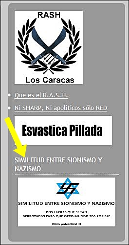 ![]() Oben: Deutlich zu erkennen ist das originale SS-Zeichen der "Schwarzen Sonne" im Hintergrund des Mannes, der offenbar ein Gewehr bedient. Unten: In einem an NS-Fahnen erinnernden Symbol wurde das Partei-Hakenkreuz gegen den Satans-Stern ausgetauscht: ![]() Unten: Wie bei den Nazis, die sich "Lonsdale"-Klamotten kaufen und ihre Jacke darüber nur soweit öffnen, dass "nsda" auf ihrer Brust erscheint, hat ein "Valkyrja"-Freund sein Zeichen so abgeschnitten, dass "ns" erscheint: ![]() Man sieht also, welche Szene sich am 1. November 2011 im "SO 36" treffen wird: die altbekannte Sammlungsbewegung aus "Satanisten" und Nazis, die man schon aus den 20er, 30er und 40er Jahren des europäischen Faschismus kennt. Was heute als ideologisches Vorfeld des NS-Terrors erscheint, hat damals mit Mordbrennerei Europa verwüstet. Wie sich die Bilder gleichen! Das "SO 36" als Brutreaktor der Querfront Was am 1. November 2011 im "SO 36" in Braun aufläuft, kommt drei Tage später, am 4. November, in eingebildetem Rot wieder. Die Springer-Stiefel brauchen nicht gewechselt zu werden! Krawallis aus dem neo-antisemitischen Milieu, die zwar nichts von Antifaschismus verstanden haben und nur aus Ressentiment "gegen Nazis" sind, so wie die Nazis mit ihrer "Neuheidentum"-Hetze aus Ressentiment gegen die westliche Zivilisation kämpfen, veranstalten ein "Siempre Antifascista Festival" in demselben Club, in dem vorher die "Pagan Metal"-Nazis feierten. Hauptsache, die "SO 36"-Kasse klingelt! ![]() Und sogar die Band-Namen ähneln sich. Während am 1. 11. die "Pagan Metal"-Band "Valkyrja" mit ihren Nazi-Freunden von der "Schwarzen Sonne" im Club auf der Kreuz- berger Oranienstraße aufspielen, heißt eine "Antifascista"-Band am 4. 11. "Valkyrians". Und während eine Band bei "Siempre Antifaschista" sich "My Terror" nennt (gelbe Pfeile oben), heißt eine der drei "Top Freunde" der "Pagan Metal"-Band "Valkyrja" auf deren MySpace-Seite "World Terror Committee": ![]() Zu "Siempre Antifascista" gehört die wirre "RASH Berlin-Brandenburg" ("Red and Anarchist Skinheads"), deren venezuelanische Schwesterorganisation "RASH Los Caracas" (zum Beispiel) offen antisemitisch ist. Das aber können die Berlin-Branden- burger "Antifascista" nicht - und zwar "siempre" (immerwährend) - lesen: Aus der "Siempre