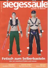 Wahn (links): Das Berliner schwul-lesbische Monatsmagazin "siegessaeule" im August 2006, mit Werbung für das "Fetisch"-Straßenfest "Folsom Europe Berlin", das der Regierende Bürgermeister von Berlin, Klaus Wowereit, unterstützt. Alles nur Spiel: "'Wir haben für die Bagatellisierung des Fetischs gesorgt', sagt Daniel Rüster, Vorstandsmitglied von Folsom Europe, 'auch wenn das die Leder-68er nervt'", so zitierte "siegessaeule" den "Folsom-Europe e. V."-Gründer und Vereinsvorsitzenden Rüster. Die Front ist klar.