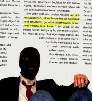 eines "Tobi Blubb", dessen Pseudonym seine Maske ist.