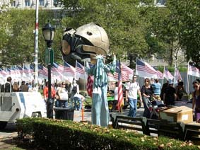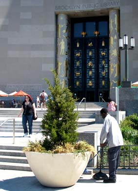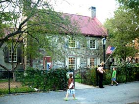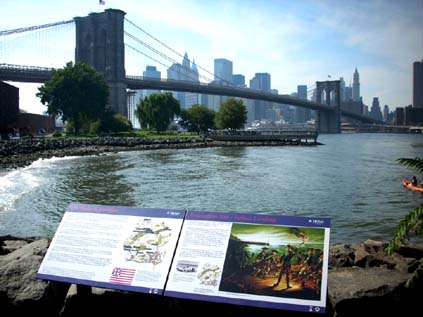 Brooklyn Is More Than Love In der Tat, in der Region des heutigen New York fanden entscheidende Schlachten gegen die Unfreiheit der Menschen statt, und fast war hier alles verloren, als wenige Monate nach der Unabhängigkeitserklärung zwölftausend hessische Söldner des englischen Königs und des britischen Handelskapitals auf der Insel Richmond, dem heutigen Staten Island, anlandeten. Viele waren klug genug, nach der kostenlosen Überfahrt eilends zu desertieren und sich den Freien anzuschließen. Etwas besseres als den Tod für den Feudalherrscher brachte das weite Land immer, in dem sogar Platz genug für die Kolonisten und die indianischen vorkolonialen "Natives" gewesen wäre. Die Engländer hatten schon vor der Boston Teaparty kommen sehen, dass sie den anhaltenden Unabhängigkeitsbestrebungen, wenn überhaupt, nur mit Gewalt begegnen konnten. Es wurde schnell ein Krieg daraus, dem man heute als "Revolutionary War" gedenkt, obwohl anfangs gar nicht an eine Revolution, sondern nur an Steuererleichterungen gedacht war. Wer schon mal durch Kuba reiste, hat - vor allem in der Santiagoer Gegend, wo tatsächlich Kämpfe der fast operettenhaften Kubanischen Revolution stattfanden - an jedem dicken Baum ein Revolutionsmemorial sehen können, wo Kämpfen und Kämpfern gedacht wird. Die Nordamerikaner gaben lange Zeit nicht so viel auf ihre eigene Geschichte, mickrige Gedenkstätten, versteckt in Brooklyns Prospect Park, wo nie ein Tourist hin kommt, wurden erst in den letzten Jahren wieder restauriert. Brooklyn fängt erst an, stolz auf "seine" Geschichte zu werden, die eben als die des Revolutionären Krieges begann. Nur wenige Stätten der Erinnerung können überhaupt in dem quirligen, seit zweihundet Jahren immer wieder neu überbauten Stadtteil wiedergefunden werden. Brooklyn ist weiblich: "Brooklyn has more than her own place in the story of America", belehrt "blooklynonline.com" der Wynn Data Ltd., einer Consulting Firma mit "fairen Preisen". Klicken Sie auf deren Webcams, wenn Sie nichts besseres zu tun haben, kost nix und läuft mit Sonnenenergie, und sehen Sie herüber nach Brooklyn Heights! Die Brooklyn Bridge, die hier steht, wo Briten und Hessen die Amerikaner einst nach Manhattan hinüber trieben, in Ruderbooten über den East River, mündet hier in die Adams Street. Den Helden der Menschenrechte sind die Straßen und Parks gewidmet, Lafayette, Greene, Putman, nicht zu vergessen der tapfere Mordecai Gist aus Maryland, und der einfältige Knox, der mit den Kanonen in die falsche Richtung zielte und den Brooklynites deshalb nicht helfen konnte. Brooklyn hat "mythological proportions in the mind of the world" erreicht, also: es lohnt sich. Die erste große Freiheitsschlacht nach den deutschen Bauernkriegen fand in Brooklyn statt, "The Battle of Brooklyn", von August bis Oktober 1776. Und ging ähnlich aus. Die Britische Flotte war schon im Juni in Staten Island gelandet, um der seit Anfang des Jahres ausufernden Rebellion der Kolonien Einhalt zu gebieten; die britischen Truppen und die hessischen Söldner mussten noch organisiert und orientiert werden, bevor sie losschlugen. New York war als eine geographisch in der Mitte der Kolonien gelegene Station zentral für den Krieg; Long Island und die schmale flache Festlandsküste gegenüber boten den ebenen Weg zu den nördlichen Neuengland-Staaten und dem schon befreiten Boston. Und New York (das heutige Manhattan) war nach Philadelphia die zweite Stadt, in der die Unabhängigkeitserklärung mit den Menschenrechten feierlich verlesen wurde -- obwohl die Vertreter des Staates New York ihr gar nicht zugestimmt hatten, als einzige, und wohl auch aus Furcht, ihr Land könnte der Kriegsschauplatz werden. "Die Macht kommt aus den Gewehren", singt Wolf Biermann, aber die Truppe von George Washington war anarchisch, die Männer fürchteten allenfalls ihren Gott, wenn überhaupt, bestimmt nicht die Vorgesetzten. Die Freiheitskämpfer waren aufgeteilt auf Manhattan und Brooklyn und der viel gerühmte American Rifle war doch nur ein müder Nachlader, als die Briten und Hessen auf 88 Fregatten bei Flaute über die Narrows setzten -- fast alle Nichtschwimmer, aber mit "military drill" und dem Sack voll Kadannz vor Kapitän und König. Taktisches Geschick überrumpelte die Amerikaner, die freiheitlich anarchisch in alle Winde flohen. Im heutigen Prospect Park, dem Schauplatz zweier wichtiger Schlachten, wäre diese große Hoffnung der Menschheit, die Amerikanische Revolution, nach ein paar Wochen schon fast zu Ende gewesen.Mit Gottes Hilfe, glaubten sie, die als Wind aus den Grünen Bergen den East River hinunter wehte und die britischen Schiffe in der New York Bay hielt, könnt's gelingen, doch auf welchen Bläser war je Verlass!? Gottvertrauen wurde zu Washingtons größter militärischer Niederlage, die Amerikaner mussten schließlich Brooklyn und New York City den Briten überlassen. Und das alles wegen geklauter Wassermelonen, erzählt die Brooklyn Saga, weil die Briten sauer waren, dass man sie erwischt hatte mit der Teufelsfrucht der Brooklynites! 256 Amerikaner starben am Stone House, das während der Kämpfe mehrfach von beiden Kriegsparteien erobert und verloren wurde, nur 9 kamen raus aus dem Schauplatz des "heldenhaftesten" und "wichtigsten" Kampfes der Amerikanischen Revolution (meint die Consulting Firma), darunter der tapfere Mordecai Gist, der mit den letzten standhielt und an den keine Gedenktafel erinnert. Zwei Tage später räumte Washington Brooklyn (aber er hatte schon noch einen Koch dabei), weil es nun auch zu regnen anfing, tagelang, hoffnungslos, wie oft Ende August auf Long Island, während in der Bronx die Sonne bräunt. Hübsche Gegend: "Evacuation Site"