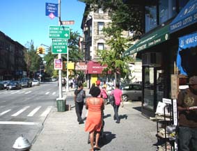rüber machten und durch Flucht die Revolution retteten, steht heute die Brooklyn Bridge und eine Gedenktafel, die den Touristen den "Battle of Brooklyn" erklärt. No entiendo nada Der Norden von Brooklyn ist heute Latino-Land, mit ein paar jüdischen und ein paar schwarzen Einsprengseln. Kaufen Sie sich hier ein amerikanisches Mobil-Telefon (say "Handy" and the answer is "No entiendo!", denn nur deutsche Rednecks gebrauchen scheinamerikanische Kunstworte, um sich zu fühlen), und die Gebrauchsanweisung ist auf Englisch und Spanisch. Diese Vorgehensweise, vom Kapitalismus erfunden, löst jedes Integrationsproblem. Und die Atmosphäre auf der Straße ist gleich viel freundlicher, wenn karibische Musik von überall her schallt. Wer das nötige Kleingeld in der Tasche hat, wird sowieso überall freundlich begrüßt. Nur keine Scheu vor fremden Gassen, New York ist heute eine der sichersten Städte der Welt. An früheren Brennpunkten des Verbrechens hängen heute Sicherheitskameras. Hier wird jedenfalls kein Auto angezündet, obwohl die Gentrifikation - in Berlin heißt sie "Gentrifizierung", wie die "Elektrifizierung" in den 10er und 20er Jahren - schon breit stattfindet, sogar in den Wohngebieten der Ärmsten, und das sind hier die Hispanics. Nachdem die Sizilianer weggezogen waren, verfielen ganze Stadtteile von Nord-Brooklyn, schlimmer als in der Süd-Bronx. Drogenabhängige zogen ein, ganze Straßenzüge wurden niedergebrannt aus Spaß an der Freud der Pyromanie. Dann kamen puertorikanische und mexikanische Familien und bauten die Ruinen wieder auf. Ist das schon Gentrifikation? In den Großbäckereien werden jetzt Tortillas hergestellt, na und? Man spricht Spanisch auf der Straße und im Call-Shop, wo der Kreuzberger Tourist, der schnell mal Mutti am Starnberger See anrufen will, damit sie sein Bankkonto wieder auflädt, eher schlecht die richtige Verbindung bekommt. Der Rat an die Touristin ist: Beherrschen Sie die Sprache der Einheimischen besser, um im Nagelstudio bestens bedient zu werden. Rassismus zwischen den Einwandererpopulationen bleibt ein großes Problem, und weil die Latino-Bevölkerung inzwischen den größten Anteil stellt, ist sie zu über 70 Prozent von den amtlich festgestellten Provokationen, Beleidigungen und Übergriffen betroffen. Weil sie kaum Englisch spricht, kann sie nicht mal zurück pöbeln. Manchmal ist ein Reiseführer empfehlenswert, und wenn auf dieser Websseite Reklame gemacht werden darf, dann jetzt mal für den -- ADAC! Unter die Babtisten, Evangelikalen und orthodoxen Juden haben sich längst die Grünen und Alternativen gemischt, auf Brooklyns Broadway (ach, es gibt ja so viele Broadways in New York!) jagt ein Öko-Shop den nächsten Bioladen, und mit "Gluten-free" werben Bäckereien, die dies zusätzlich auf hebräisch schreiben. Auch eine Essensregel, an die man glauben kann oder nicht, genauso wie an Allergien, Rheuma und "ohne Pestizide". Der Aberglaube lauert überall, und unter Künstlern ist er bekanntlich weit verbreitet seit alters her. Die Künstler waren es, die Williamsburg, den Nordwesten von Brooklyn, zur neuen Heimstatt der Bohème machten. Also: die Kinder der Reichen, die sich dieses Leben leisten können, oder wenigstens die der akademischen middle class. Und die haben nun mal in Massachussets, am Familiensitz, der zu Thanksgiving aufgesucht wird, ihr Auto stehen, nicht immer selbst "a Mercedes Benz", aber Daddy hat ihn; und man erbt ihn oder das Kleingeld dazu, wie bei uns, und die Autoclub-Mitgliedschaft sowieso, die wird weiter gegeben wie das Silberbesteck. Also ADAC. Der hat's gemerkt und die Zielgruppe der zeitweiligen Bauwagenplatzbewohnerinnen auf New York-Kurztripp entdeckt. Christine Metzger schreibt sich im "ADAC Reiseführer plus New York" (übrigens der einzige deutschsprachige, der einen brauchbaren Straßenplan von Brooklyn enthält; in der "Metropole" Berlin bekommt man heute nicht mal auf dem Ku-Damm einen Stadtplan von New York, der über Manhattan hinausführt und dabei lesbar bleibt) die Finger wund über "Gentrification" und was sie den schön schmudddeligen Stadtvierteln angetan hat, die so romantisch rotten waren (aber in denen man niemals das Kind großziehen würde, das selbstverständlich die Waldorfschule besuchen soll). Niemals, befand auch Wowereit, würde er seine Kinder, wenn er welche hätte, in eine Kreuzberger Staatsschule schicken, da, wo die Touristen in Bussen die 1.-Mai-Schäden besichtigen. In die Lower East Side Manhattans, gleich gegenüber von Brooklyns Williamsburg, wanderten die Deutschen einstmals ein, bevor sie, reicher geworden, wieder auswanderten in den Mittelwesten der USA und den osteuropäischen Juden ihre Bruchbuden der Lower Eastside überließen. Die Juden sind weiter gezogen nach Williamsburg, auch wenn "Katz's Delicatessen" noch auf der Houston Street ansässig ist, jetzt als Touristenmagnet, und immer noch mit dem Kartonversand deutscher Wurst wirbt: "Send a salami to your boy in the Army!" Soll das lustig sein? Hoffentlich lebt er noch, wenn das Päckchen ankommt in Bagdad, wo er die Ideen der Menschenrechtsdeklarationen "implementiert". (Oder doch nur den "Dollar, kling, kling, kling"? Gab es das je: eine Armee, die für die Gleichberechtigung der Frau kämpft!?) Die bereits stattgefundene Gentrifikation (das böse Wort des Kreuzberg-Friedrichshainer Proterrorismus) in SoHo und dem East Village greift schon über nach Williamsburg, seinen vielen Little Puerto Rico Inseln und seinem Schtetl. Was Metzger für die ADAC-Mercedes-Benz-Kinder über das ehemals deutsche Dorf schreibt, das in den letzten zwanzig Jahren zum Gallerieviertel wurde, kann als Prophezeiung für Nordwest-Brooklyn gelten: "Es war anfangs wirklich eine Revitalisierung, die noch nicht die Züge der Gentrification trug." Die beschreibt sie so: "Diesen Prozess leiten ... in der Regel die Künstler ein, ihnen folgen die Galeristen, in deren Schlepptau sich exklusive Geschäfte, Boutiquen, Restaurants sowie ang