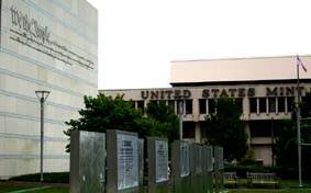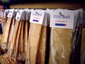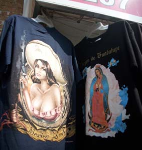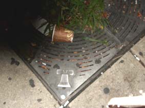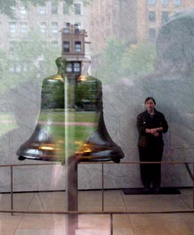 "The Lady": Weit weg: "Liberty Island" mit der Freiheitsstatue in der Bucht von New York, von Brooklyn aus gesehen. Unsere Gute Frau Freiheit stand einmal für die Hoffnungen der Einwanderer; die Ghettos von Brooklyn und der Bronx stehen heute für die Realität. Gar nicht in Brooklyn, sondern in Philadelphia: Die säkulare Reliquie des US-amerikanischen Freiheitsglaubens, die "Liberty Bell", deren kitschiger Verehrung Bob Dylan in seinem Lied "Chimes of Freedom" die harte soziale Wirklichkeit entgegen setzte, wird streng bewacht -- "in der Nacht, und besonders - in der Nacht!" (sang Wolf Biermann an anderer Stelle damals über die säkulare Verehrung des "Volkseigentums"). Auf der Glocke, die aus der Kolonialzeit stammt und erst im 19. Jahrhundert von den Gegnern der Sklaverei zur "Freiheitsglocke" umgewidmet wurde, steht ein Spruch aus dem Alten Testament: "Proclaim LIBERTY throughout all the Land unto all the Inhabitants thereof" (3. Buch Mose - Levitikus - 25,10. Der Spruch bezieht sich in der Bibel auf ein Gebot Gottes an Moses, das fünfzigste Jahr nach der Ankunft der Israeliten im Gelobten Land zu einem Jubeljahr und "Freijahr" zu machen, in dem nicht gearbeitet werden soll.) Die Freiheit muss erst noch wach geküsst werden: In einen Schneewittchensarg aus Glas und Stahl hat man die Freiheitsglocke neuerdings gestellt (Vordergrund). Im Museum, das die Touristen zuerst durchlaufen müssen (flacher Bau rechts), bevor man sie zur Reliquie vorlässt, wird die Geschichte der Glocke erzählt: "America's Liberty Bell - The World's Symbol for Liberty" hat man in die Granit verkleideten Wände des Museums meißeln lassen. Fotos von prominenten Glocken-Besuchern - sind es 'Prinzen', die vorgeben, die Freiheit wach küssen zu können?, vom Dalai Lama bis zum Indianerhäuptling, Vertreter archaischer Gemeinschaftsformen, denen das aufgeklärte Konzept der Freiheit des Individuums wesensfremd ist! - sind hier ebenfalls ausgestellt: Wundertätige Wirkung? Häuptling Little Bear von den Black Feet Indianern berührt 1915 die "Liberty Bell" an ihrer empfindlichste Stelle, der Ritze. Foto aus der Ausstellung zur Geschichte der Glocke im "Liberty Bell Center" des neuen "Independence National Historical Park" in Philadelphia, eines mehrere Quadratkilometer weiten Campus, auf dem neuerdings "our Colonial, Revolutionary, and Federal-period heritage", das schließlich zur Gründung der Vereinigten Staaten von Amerika führte, den Touristen nahe gebracht wird, unter der tausendmal wiederkehrenden Formel "We The People", den ersten drei Worten der Verfassung der USA. Gezwungen sich zu entscheiden zwischen Segregation und einer Assimilation, die auf der Unterdrückung ihrer einzigartigen Kultur beharrte, hätten die "Native Americans" wohl nicht die Hoffnung auf gerechte Behandlung und gleiche Rechte gesehen, die von der Glocke verkörpert werde, bemerkt der Kommentartext zu dem Häuptings-Foto in der Ausstellung scheinkritisch. "We the People", Verfassung zum Selberschreiben: Ja, das ist Freiheit! Ein "Document Writing Set" mit Dokumentenpapier, Gänsekiel-Schreibfeder und Instant-Tintengranulat ist der Verkaufshit im Andenkenladen des "National Constitution Center" von Philadelphia (unten links, mit dem Schriftzug der ersten Worte der Verfassung an der Wand: "We the People") ... ... gleich neben der staatlichen Münze (rechts) und eine gefühlte Meile weit weg vom "Liberty Bell Center". Wer ist das Volk, Freiheit für wen? Die Revolution auf dem Esstisch, erstarrt: Schmuckteller und Biedermeier-artige Bildstickerei aus der Ausstellung zur Verherrlichung der Freiheits-Reliquie. Die können ihre Geschichte abfeiern, diese Amis! In Philadelphia ziert die Reliquie der Freiheit sogar das Straßenpflaster, zum Drauftreten: "Battle of Brooklyn" -- Ergreift sie! Das war ja klar: Die Melonen sind schuld! In großen Mengen bis heute genossen (und das Obst und Gemüse schmeckt hier auch viel besser als bei uns!), konnten schon die englischen Soldaten nicht den Brooklynite Melons widerstehen: Diebe im Felde, arretiert von mutigen Amerikanern, eine Schwadron englischer Kameraden wollte sie befreien -- und schon bricht der schönste Revolutionäre Krieg los! Prospect Park Memorial: Geschossen wurde dann aber scharf, nicht mit Melonen. George Washington verlor hier hunderte tapfere Männer, die aus Maryland gekommen waren, um als Freischärler ihre neue Freiheit zu verteidigen. Eine ziemlich schäbige Säule (oben) mit verrotteter Vorderseite (unten) steht am Schlachtfeld, wohin sich kein New York-Tourist verirrt: "Zu Ehren der vierhundert Marylander, die auf diesem Schlachtfeld am 27. August 1776 die Amerikanische Armee retteten", hieß es einmal auf dem Sockel der Säule. Am "Stone House" in der Nähe des Prospect Park, das Anfang der 30er Jahre des 20. Jahrhunderts "aus alten Steinen wieder aufgebaut" wurde, wie es heißt, und heute ein Museum des "Battle of Brooklyn" ist, das allerdings kaum ein Brooklynite kennt, kämpfte Mordecai Gist mit anderen Marylandern, die im erbitterten Hin und Her fast alle starben: Ein dritter Trupp stand ein paar Meilen weiter in einer Schlucht namens "Porte" im heutigen Prospect Park, fällte die alte Grenzeiche aus der frühen Kolonialzeit, die nach dem britischen Gouverneur als "Dongan Oak" bekannt war, und machte daraus eine feine Wegsperre gegen die Engländer und Hessen unter dem hessischen General Philipp von Heister, so dass Washington genügend Zeit gewann, den Großteil der Kontinentalarmee über den East River nach Manhattan zu entsetzen. Die Amerikaner von der alten Weiß-Eiche flohen mit ihren beiden Kanonen, als die Kontinentalarmee in Sicherheit war. Ein Gedenkstein erinnert daran: Gibt es Revolutions-Lektüre auch auf Spanisch? Puerto Rico ist im Norden und Nordosten Brooklyns überall (oben und unten: im Latino-Zentrum von Brooklyn-Bushwick), und mehr als die große Freiheit interessiert allemal das kleine Glück. Wo die Jungfrau von Guadelupe gleich neben der Linda 