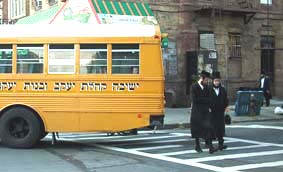 viele?! Das wäre nicht wenig, das war von Anfang an der Sinn der Freiheitsrechte und der Verfassung der Vereinigten Staaten von Amerika, die eben voller Absicht keinen Gottesbezug enthält. Die europäischen Konservativen, die in die Verfassung der Europäischen Union unbedingt diese Ableitung allen Rechts von einem Gott hinein geschrieben haben wollten, haben das immer noch nicht begriffen. "In God We Trust" steht eben nur auf dem Dollar-Schein, nicht in der Verfassung, und auch auf dem Geldschein bleibt die Frage: Welcher Gott? unbeantwortet, egal, welchen Schwachsinn über "Illuminaten" sich die Antisemiten und Verschwörungstheoretiker von Tobi Blubb bis Jan van Helsing zum Dollar haben einfallen lassen. Die heutigen US-Geldscheine sind sowieso erst von 1935, und die meisten Köpfe, durch deren zugehörige Hände die Scheine gehen, wissen ohnehin nichts von der Symbolik, wenn sie nachzählen, ob sie sich den Hamburger überhaupt noch leisten können. Und? Was bemerkt? "Vom Juden" kommt der Deutsche immer gleich aufs Geld, das ist ein ewiger Fluch des Antisemitismus. Bleiben wir lieber bei Vergil und Jefferson, dann bezieht sich "Novus Ordo Seclorum" vom Geldschein auf das neue Zeitalter der Menschenrechte für "We the People". In Brooklyn, der größten jüdischen städtischen Siedlung weltweit, haben auch die Chassiden ein Refugium gefunden, die vor den Pogromen in Russland gottseindank nicht ins preußische Berlin, sondern ins sichere New York flohen. 40 Prozent der "weißen" Bevölkerung Brooklyns soll heute jüdische Vorfahren haben, aber die meisten jungen Leute sind hier so jüdisch, wie die Kreuzberger und Friedrichshainer Studentinnen und Studenten christlich sind: Bohème. Dennoch war der 11. September 2001 ein Angriff auf die jüdischen Menschen und das Judentum schlechthin; das versteht man erst so richtig, wenn diese vielen Menschen sichtbar werden auf der Straße, weil sie sichtbar sein möchten in ihrer Tracht und mit ihren Sitten, wo sie gefahrlos sichtbar sein können, auch wenn sie nur eine kleine freilich auffällige Minderheit sind unter den vielen New Yorker Juden des "ganz normalen" Woody-Allen-Bob-Dylan-Milieus. Ja, das stimmt wohl: manches Kind wird lieber in hippen Klamotten rumtoben wollen statt in einer alten Tracht, die ausgrenzt und einsperrt, brav am Händchen gehend, mit Schläfenlöckchen wehend im Wind. Aber denken Sie mal an Ihr Kommunionkleid aus den 60ern! Oder an das "Junge-Pioniere"-Hemd und den Zwang, sich den Arm zu dem idiotischen "Junge Pioniere"-Gruß zu verrenken! Wer dem Islam vorwirft, keine Aufklärung zu haben, sollte das orthodoxe Judentum nicht vergessen, aber auch nicht die Anti-Aufklärung der Realsozialisten. Die Menschenrechte, an deren Entwicklung Moses Mendelssohn in Berlin mitwirkte - gekleidet wie "die da" in Brooklyn, als er nach Berlin kam! -, sind nicht das Ziel von Religionen, auch wenn sie am ehesten vom - der neuheidnischen Rechten ach so verhassten - "Judao-Christentum" befördert wurden. Und behindert. Manch Gotteshaus wäre noch auf Abriss zu verkaufen wie einst Saint Jacques in Paris, bevor die Ziele der Amerikanischen und der Französischen Revolutionen am Horizont aufscheinen wie die rote Sonne auf den Fahnen der Sozialisten. Das Lied scheint niemand zu singen in Brooklyn, obwohl es hier vielen ökonomisch schlecht geht und Fundamentalismus jeder Kulör Konjunktur hat: "... kein Gott, kein Kaiser noch Tribun / Uns aus dem Elend zu erlösen / Können wir nur selber tun". Etliche Kämpfer der Kontinentalarmee Washingtons wussten das schon. Ihr Denkmal, mit Georgie hoch zu Ross, steht heute mitten unter den Trachtenträgern, die ihre Frauen genauso schlecht behandeln mögen wie lateinamerikanische Machos und schwarze Rap-Fans und die vielen, vielen Islamisten New Yorks, allesamt Brooklynites, die ihren "Lebensstil" frei leben können. Washingtons Pferd scheut nicht, wenn das Denkmal heute den Skatern zur Übung dient. Kämpfe müssen immer wieder neu ausgefochten werden. Frauen, die sich physisch und psychisch mit den Geburten von fünf oder acht Kindern ruinieren müssen, weil die Religion es verlangt - hier mal gerade die jüdische, dort die muslimische, und sonst wo die katholische, mormonische, baptistische -, werden zweifellos missbraucht. Gemach: Auf den Spiel- und Bolzplätzen von Williamsburg rennen Jungen in weißem Hemd und schwarzer Hose, mit Schläfenlocken und Kippa beim Fußballspiel umher, toben, reißen sich und halten sich gegenseitig fest und haben Spaß wie überall auf der Welt. Männer haben es eben in allen Religionen besser. Auf der Straße steht ein Lautsprecherwagen für den Wahlkampf, aus dem es in einem Mix aus Englisch und Jiddisch tönt: "Vote for change. A jeijde Schtimme for Daniel Squadron", den von der "New York Times" unterstützten Kandidaten für den Landes-Senat von New York State. Jiddisch ist hier die normale Sprache, wie im Viertel gegenüber Spanisch. Das überrascht nur den, der nicht mehr daran denken mag, dass Jiddisch auch und selbstverständlich die Sprache des Berliner Scheunenviertels war. Und in New York gibt es sogar eine Synagoge für Schwule, was immer das bedeuten soll. Jüdisches Leben, geschützt von der Militärmacht der USA, ist hier so vielfältig, wie Leben eben überhaupt ist. Wie sich menschliches Leben entfalten kann ohne die Angst vor antisemitischen Pogromen, aber unter der Angst vor materieller Armut. "We the People" auf engstem Raum. (September 2008)